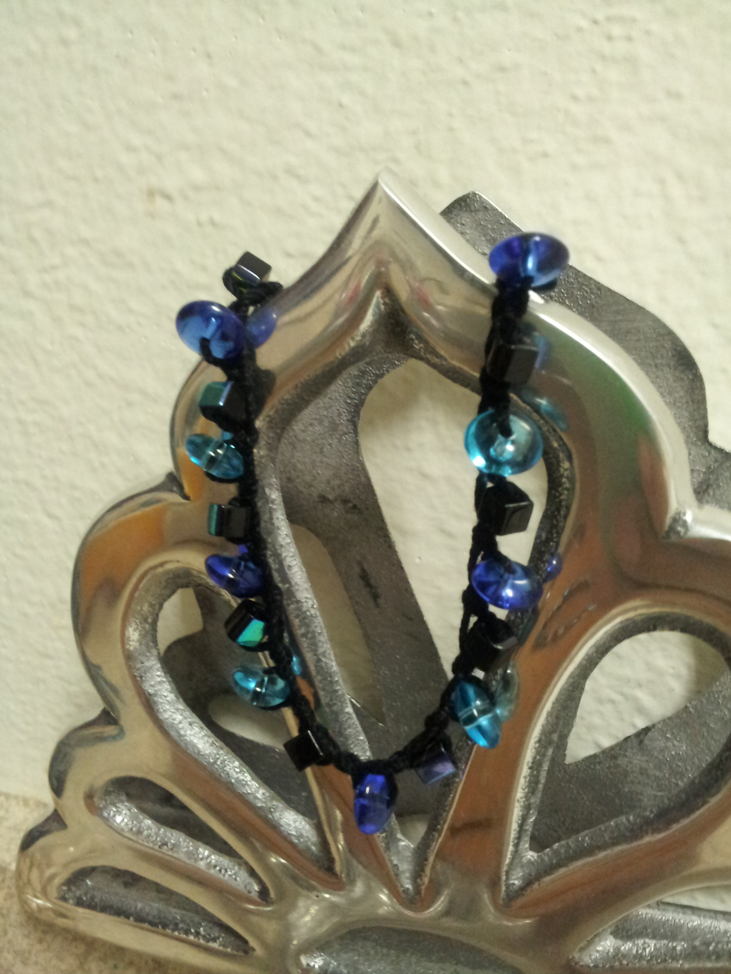 Hand made crochet and glass bracelet. Aprox. 7 inches long. The price listed is for one bracelet only.