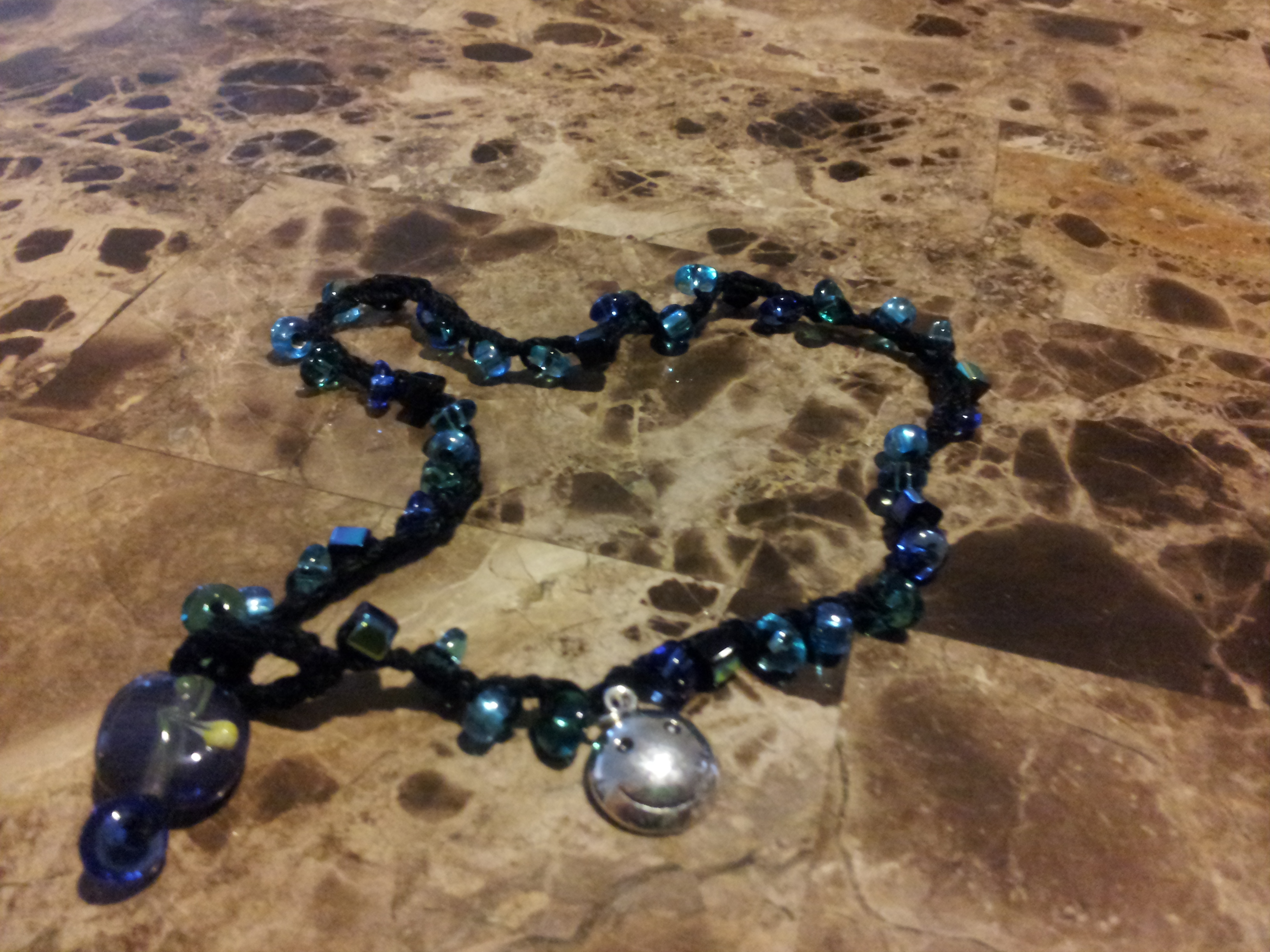 Mercerized cotton and crystal beads. Wraps-around. Measures aprox. 15" long. Leave a note for especial measures. Handmade with love in every stitch!