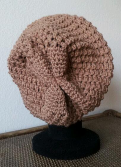 Handmade slouchy hat. Measures aprox. 21 inches in diameter. Can be made to fit (specify the measure of your head).
