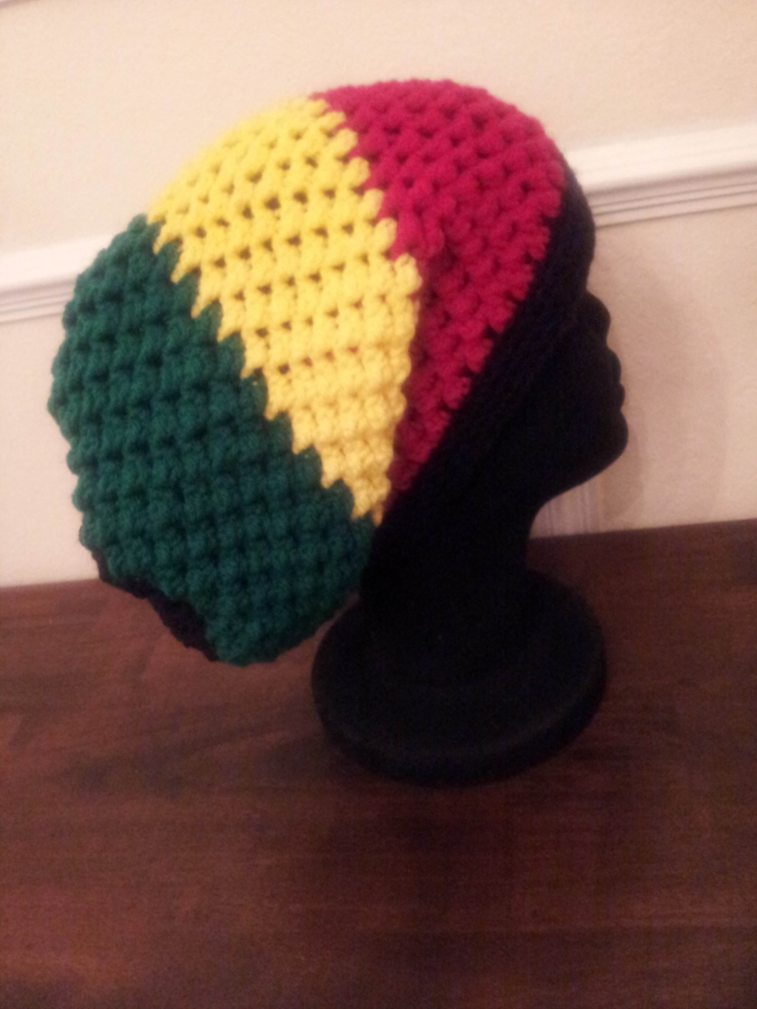 Very slouchy Rastafarian style hat. As always made with love in every stitch!!!