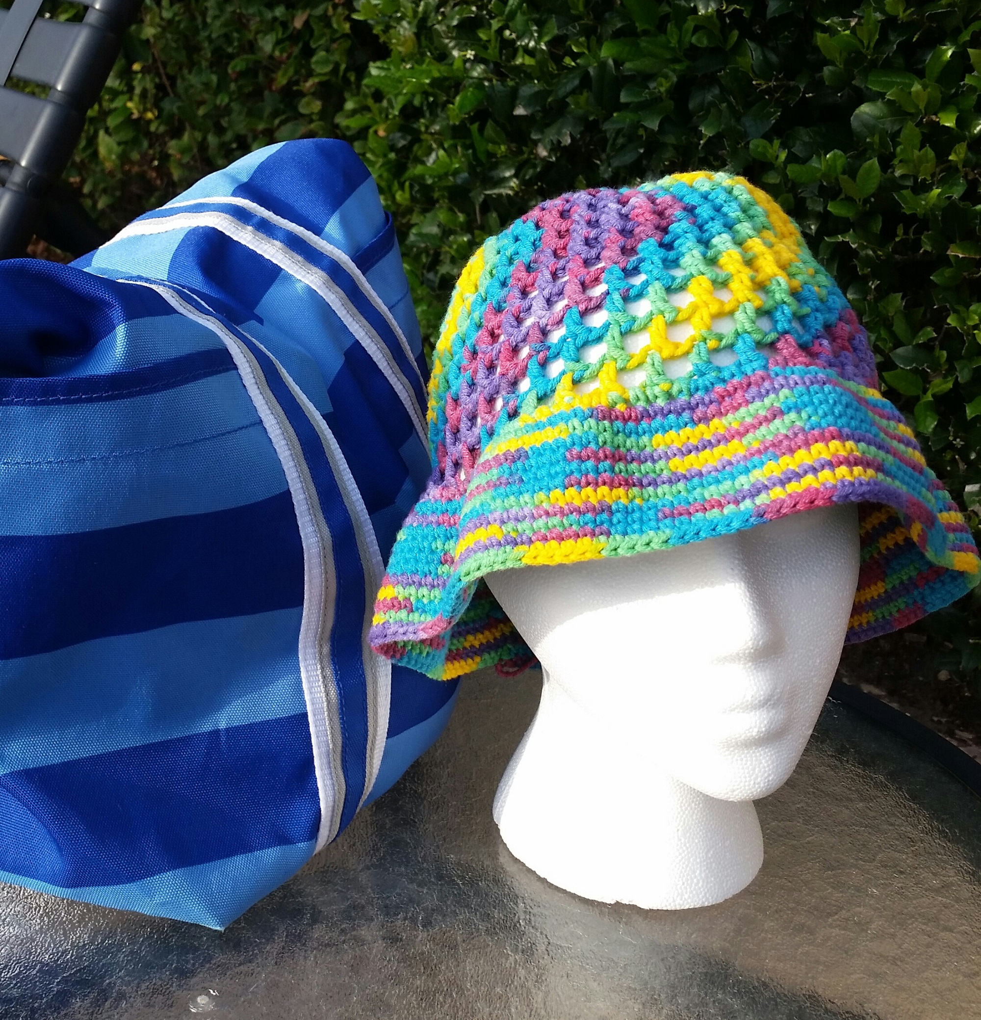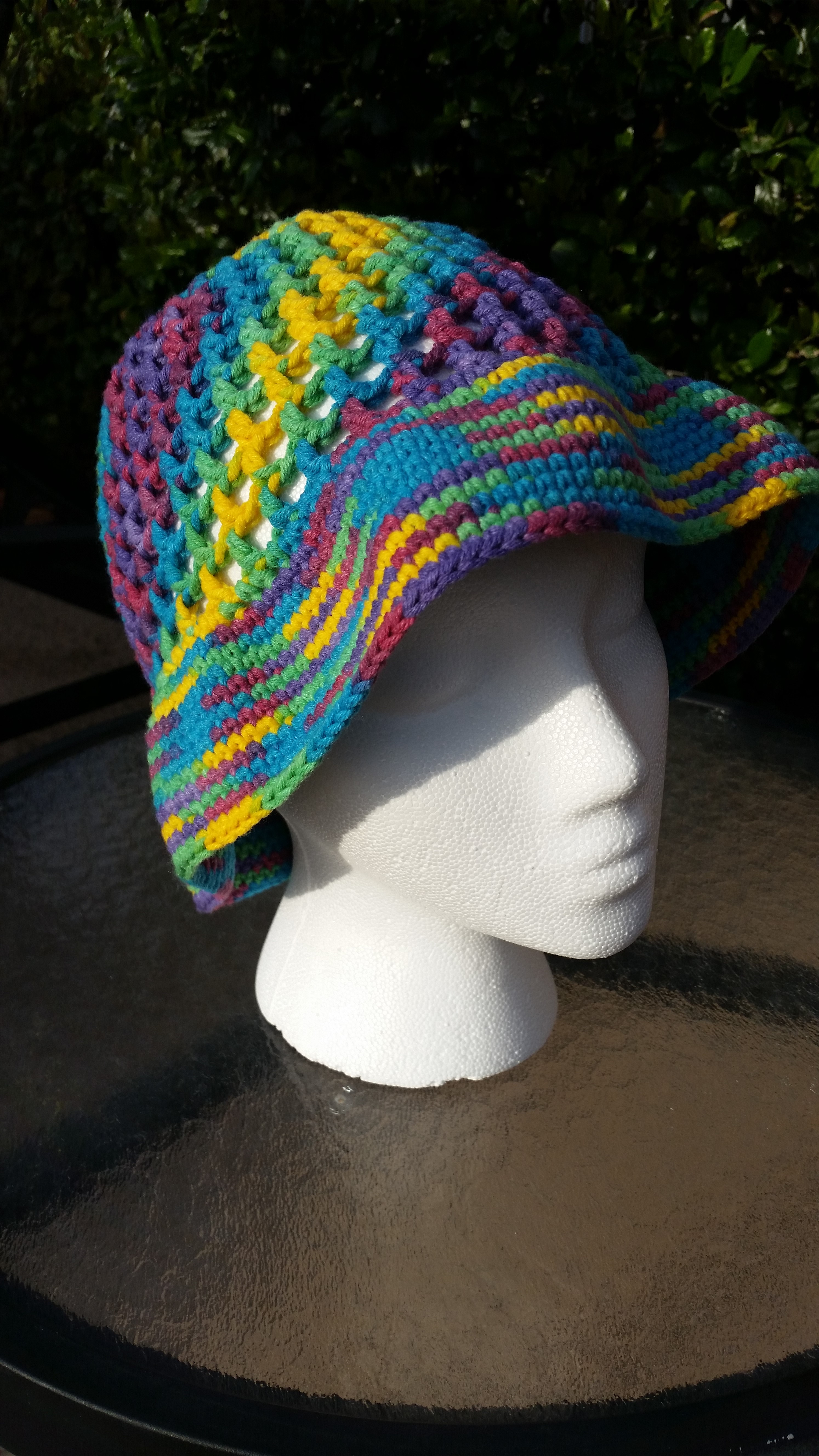 Sun hat with wide brim to keep the sun from your eyes. It will keep you cool since it is made of 100% cotton yarn. Measures 20 - 23 in. round. As always made with love in every stitch!!!