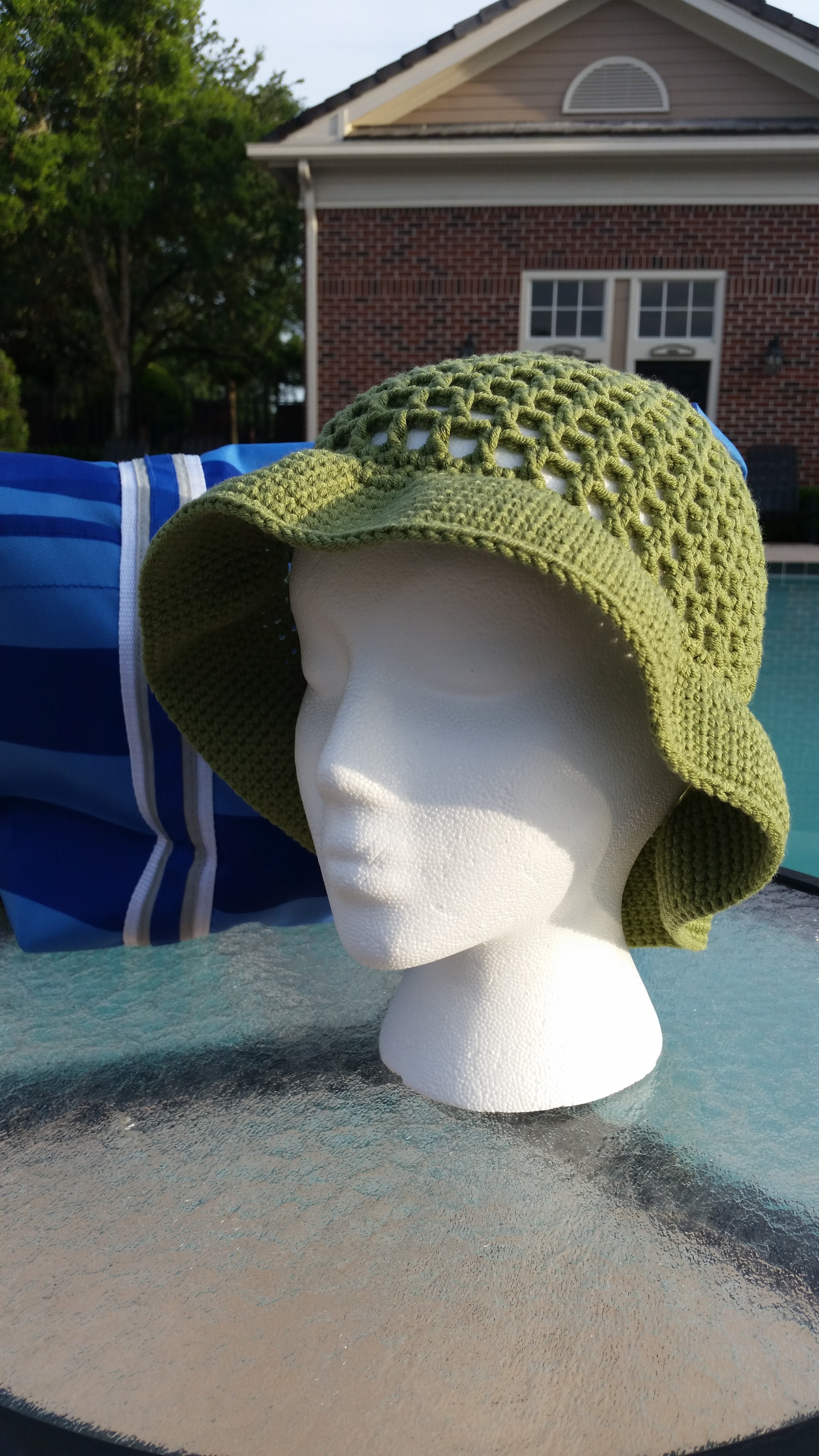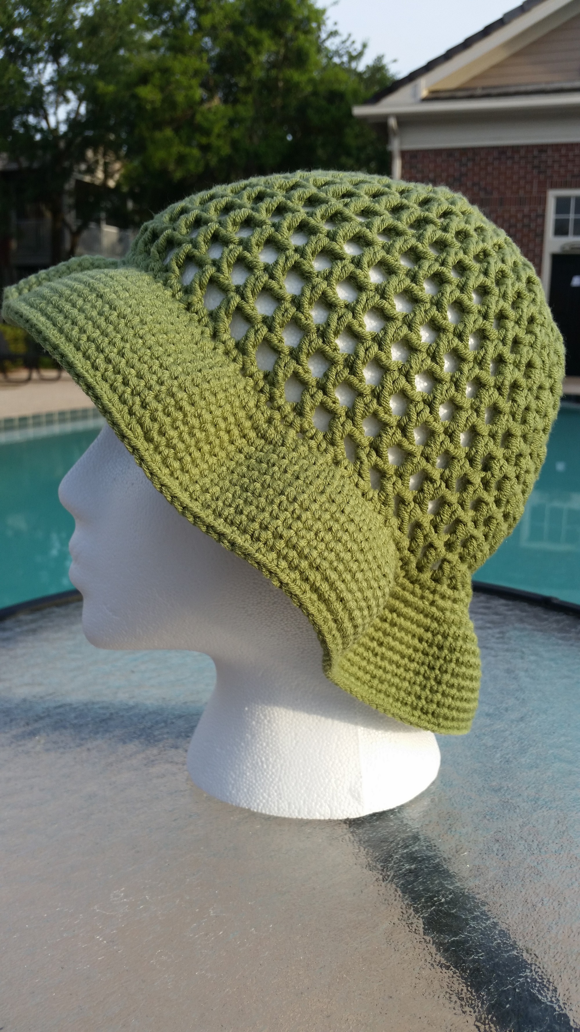 Sun hat with wide brim to keep the sun from your eyes. It will keep you cool since it is made of 100% cotton yarn. Measures 20 - 23 in. round. As always made with love in every stitch!!!