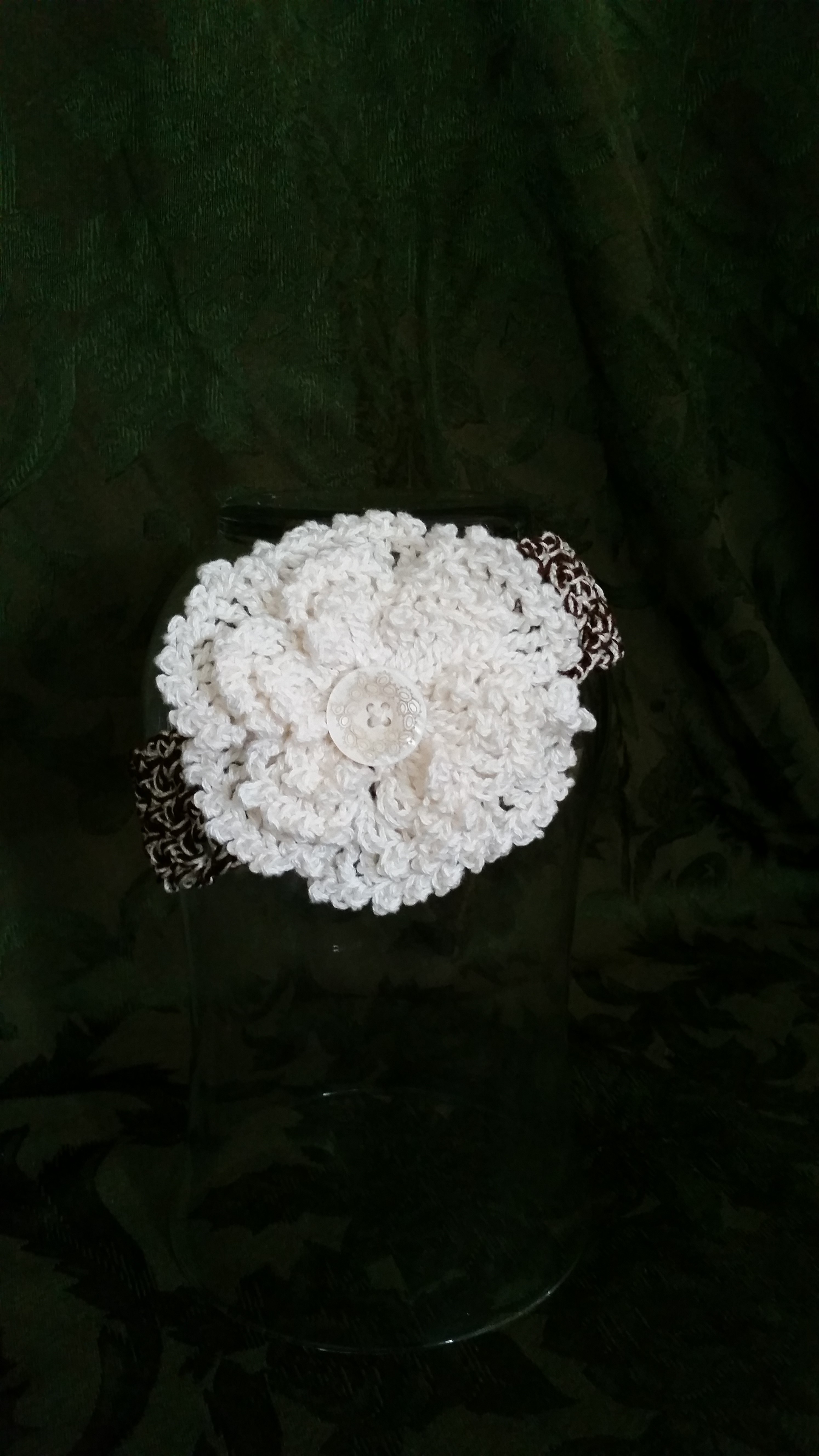 Delicate crochet headband. Handmade with mercerized cotton yarn. It has an added elastic band to make it adjustable to your head size. As always, made with love in every stitch!!!